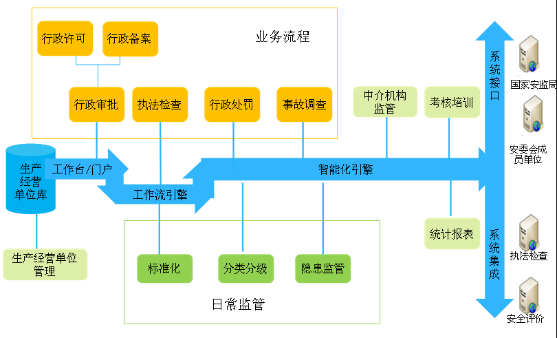 依托國家和地方政務信息資源,建成覆蓋全省各級安全生產監(jiān)管部門、各級安委會成員單位之間互聯(lián)互通的信息網絡平臺和安全,本系統(tǒng)將建立統(tǒng)一的企業(yè)信息服務交互出口,向企業(yè)采集相關信息,并提供安監(jiān)信息服務,實現(xiàn)隱患排查治理、監(jiān)管監(jiān)察、應急救援等業(yè)務工作的數(shù)字化、流程化、網絡化和智能化管理。建立資源共享、應急協(xié)同機制,實現(xiàn)安監(jiān)系統(tǒng)與安委會成員單位之間的資源共建共享,信息互通,技術相互支持、展開聯(lián)合應急行動、共同應急處置,從而進一步提高應急反應速度和應急處置能力,有效降低和減少重特大安全生產事故和其他突發(fā)事件帶來的影響和損失。