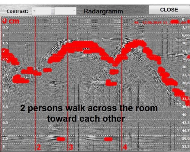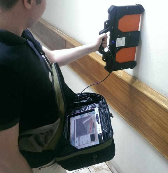 該裝置的操作原理是操作者將天線模塊導(dǎo)向墻壁。 然后即可在計(jì)算機(jī)屏幕上觀察當(dāng)物體在墻后移動(dòng)時(shí)反射信號(hào)的雷達(dá)圖的變化。
