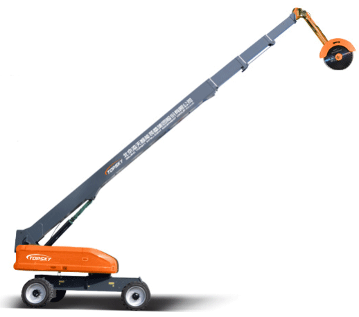 用于井口著火狀態(tài)下切割損毀的井口裝置,臂架配備冷卻噴淋裝置、切割機構,臂長≥40m,無線遙控距離≥1000m。