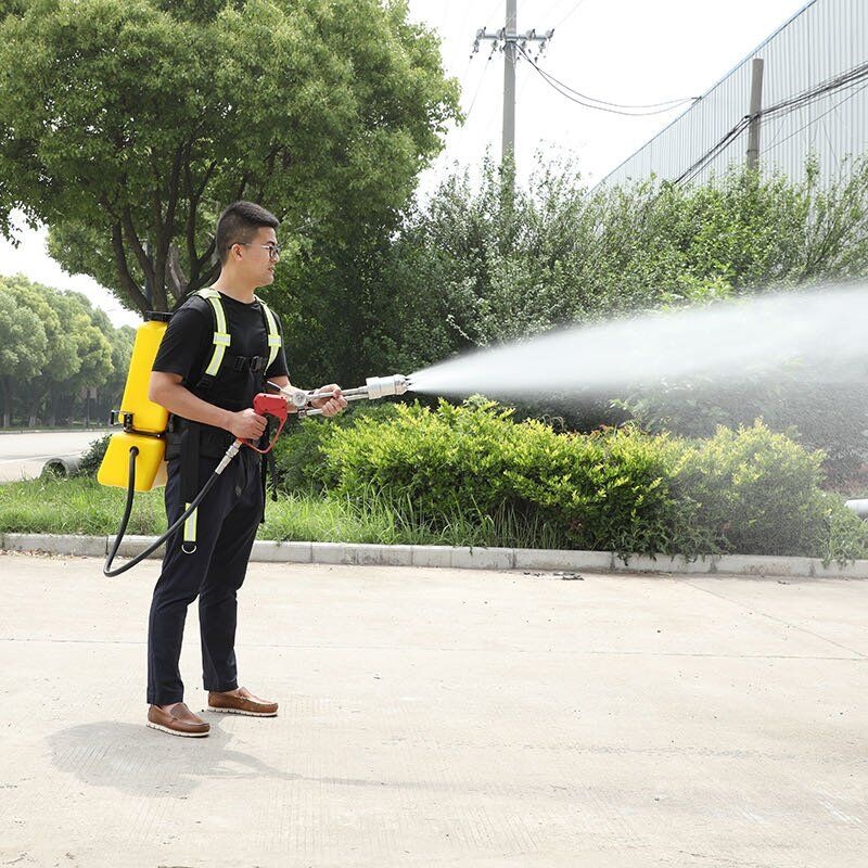 本產(chǎn)品是電機(jī)驅(qū)動水泵產(chǎn)生一定壓力的水流,通過對水流壓力和流量的控制后,再通過可產(chǎn)生細(xì)水霧的專用噴槍噴出進(jìn)行滅火的裝置。改裝置設(shè)置了限壓限流、缺水保護(hù)、欠壓提醒等多種保護(hù)。系統(tǒng)沒有壓力容器。徹底解決了使用壓力容器的安全隱患。
