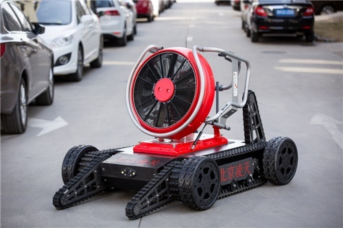 消防排煙偵察機器人采用履帶+擺臂+輪式的底盤設計,裝配大功率水驅(qū)動排煙機。水霧噴射裝置,形成霧化效果。消防排煙機器人在救援當中可深入災害現(xiàn)場執(zhí)行排煙降塵、冷卻、送風、降低熱輻射等多種作業(yè)。