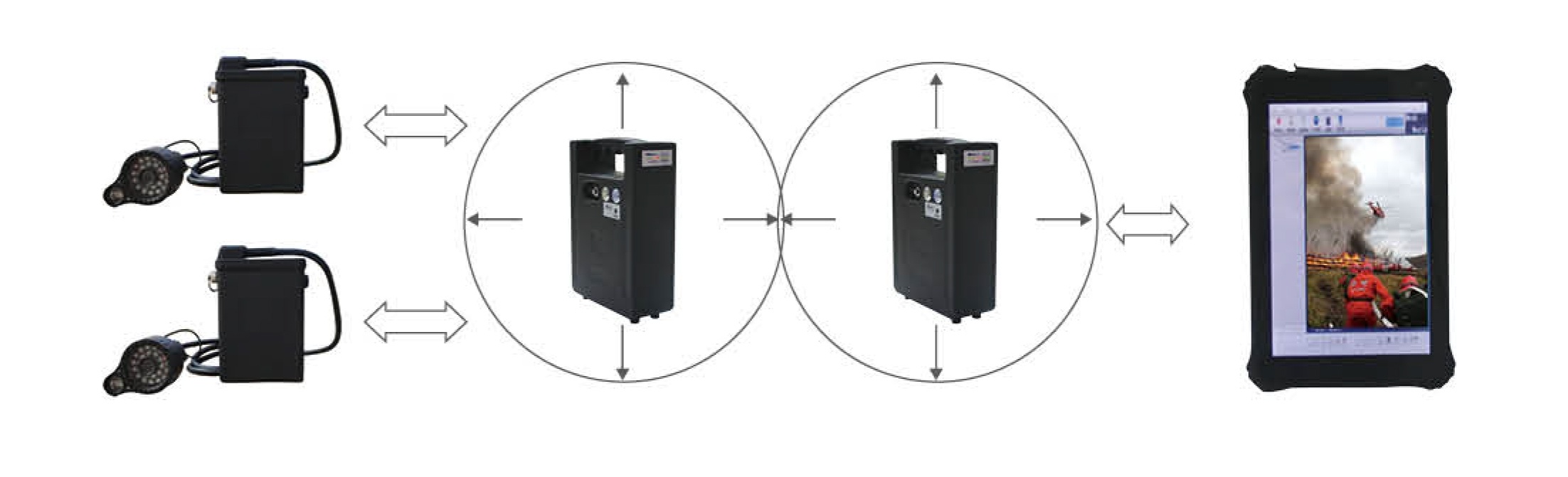該裝置采用無(wú)線連接方式的信號(hào)中繼與傳輸,應(yīng)急通信網(wǎng)絡(luò)的通信距離可達(dá)20公里。無(wú)線通信網(wǎng)絡(luò)采用自組織、自愈合方式快速形成多跳鏈狀或網(wǎng)狀網(wǎng)拓?fù)浣Y(jié)構(gòu),無(wú)線通信距離不小于2000米,具有快速部署、高帶寬、低時(shí)延、可靠性強(qiáng)等特點(diǎn)。井下救援人員或工作人員,通過(guò)佩戴礦用本安型平板計(jì)算機(jī)、配套的低照度攝像頭自帶語(yǔ)音通話、無(wú)線中繼器、多參數(shù)測(cè)定儀等裝備,將現(xiàn)場(chǎng)的實(shí)時(shí)圖像、語(yǔ)音、環(huán)境參數(shù)等信息實(shí)時(shí)回傳到指揮平臺(tái),調(diào)度指揮人員可以實(shí)時(shí)了解現(xiàn)場(chǎng)情況,并對(duì)現(xiàn)場(chǎng)人員進(jìn)行調(diào)度指揮。