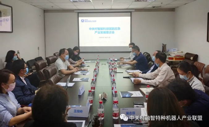 中關村管委會產業(yè)發(fā)展處研調員陳星、楊璇,專程到會上指導,并與參會單位負責人,就特種機器人產業(yè)如何賦能社會應急需求,展開了熱烈的討論。