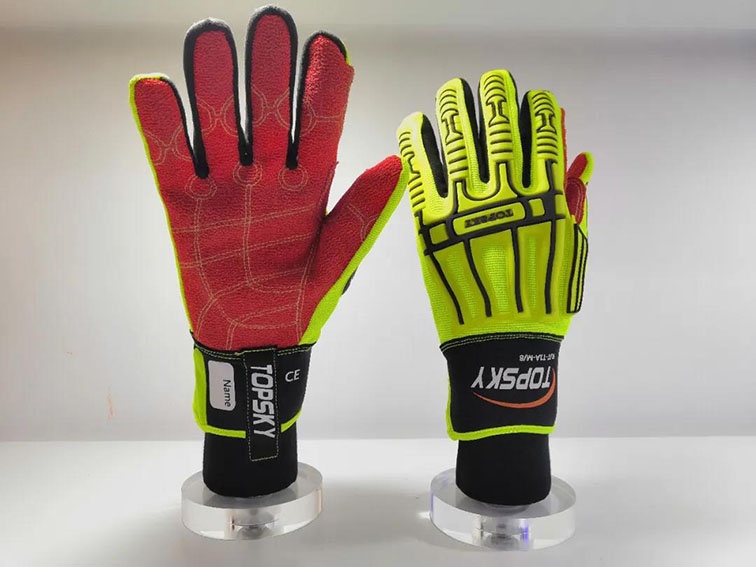 采用3D立體設(shè)計(jì),符合人體手型自然彎曲,手掌指尖一片式翻轉(zhuǎn)手指背,主體顏色為橘紅色和黃色,主要材質(zhì)為牛皮和芳綸雙面針織布,總體性能符合《GA633-2006消防員搶險(xiǎn)救援服裝》的標(biāo)準(zhǔn)。
