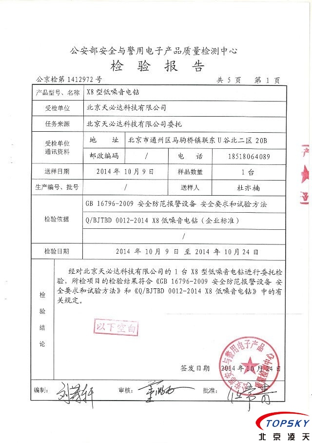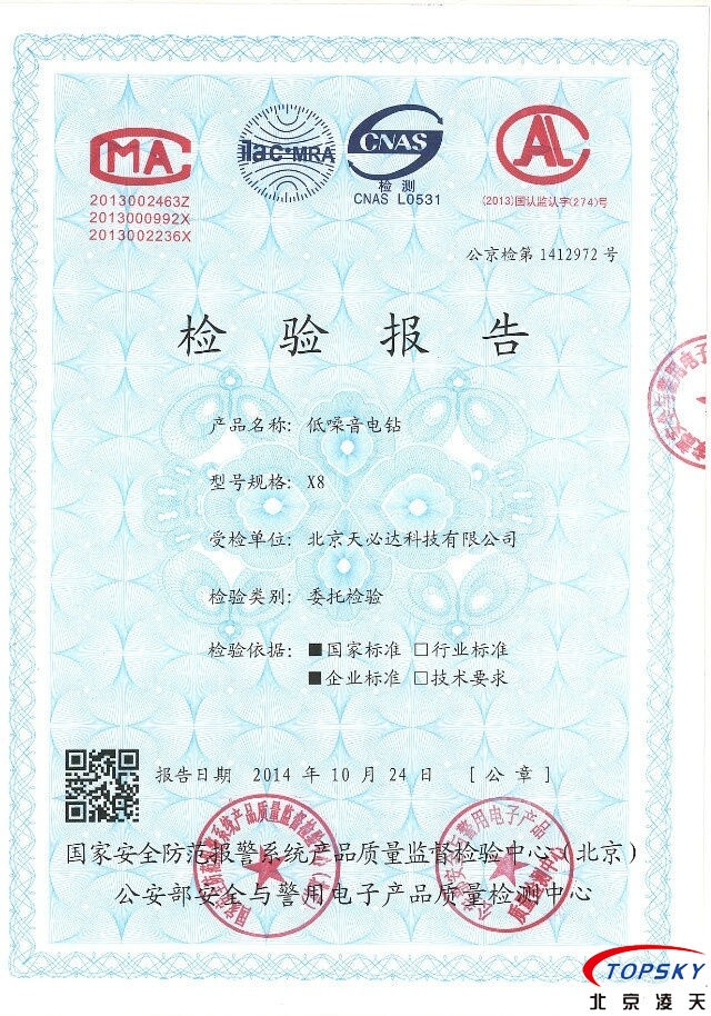 X8靜音電鉆 通過(guò)公安部權(quán)威機(jī)構(gòu)檢測(cè)