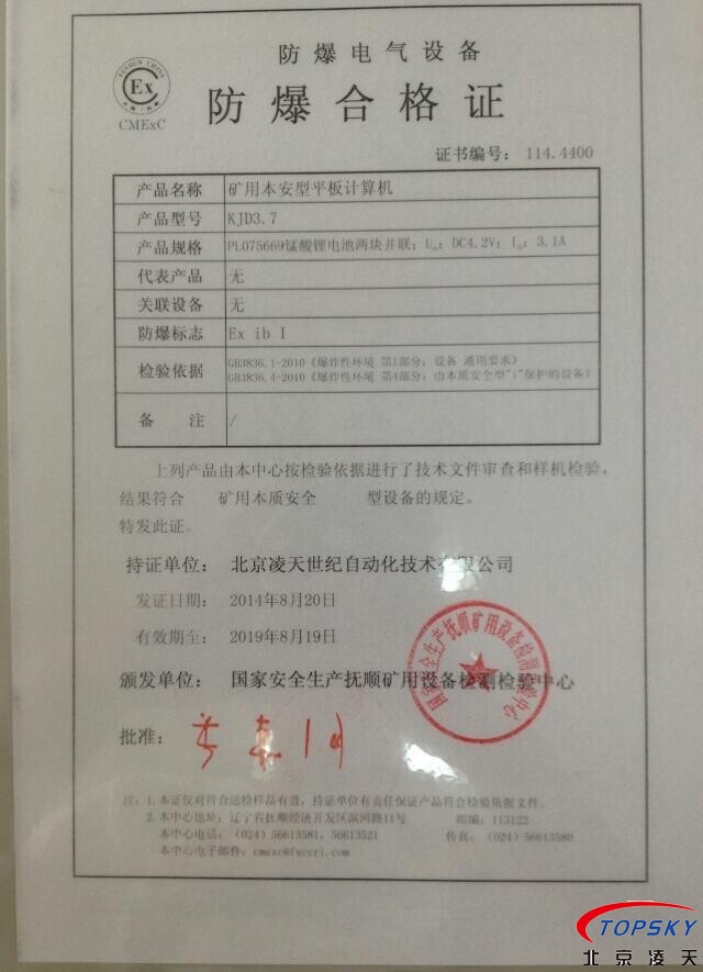 【云安通】KJD3.7防爆移動執(zhí)法終端(本安平板計算機) 技術(shù)完成單位:北京凌天世紀自動化技術(shù)有限公司 |