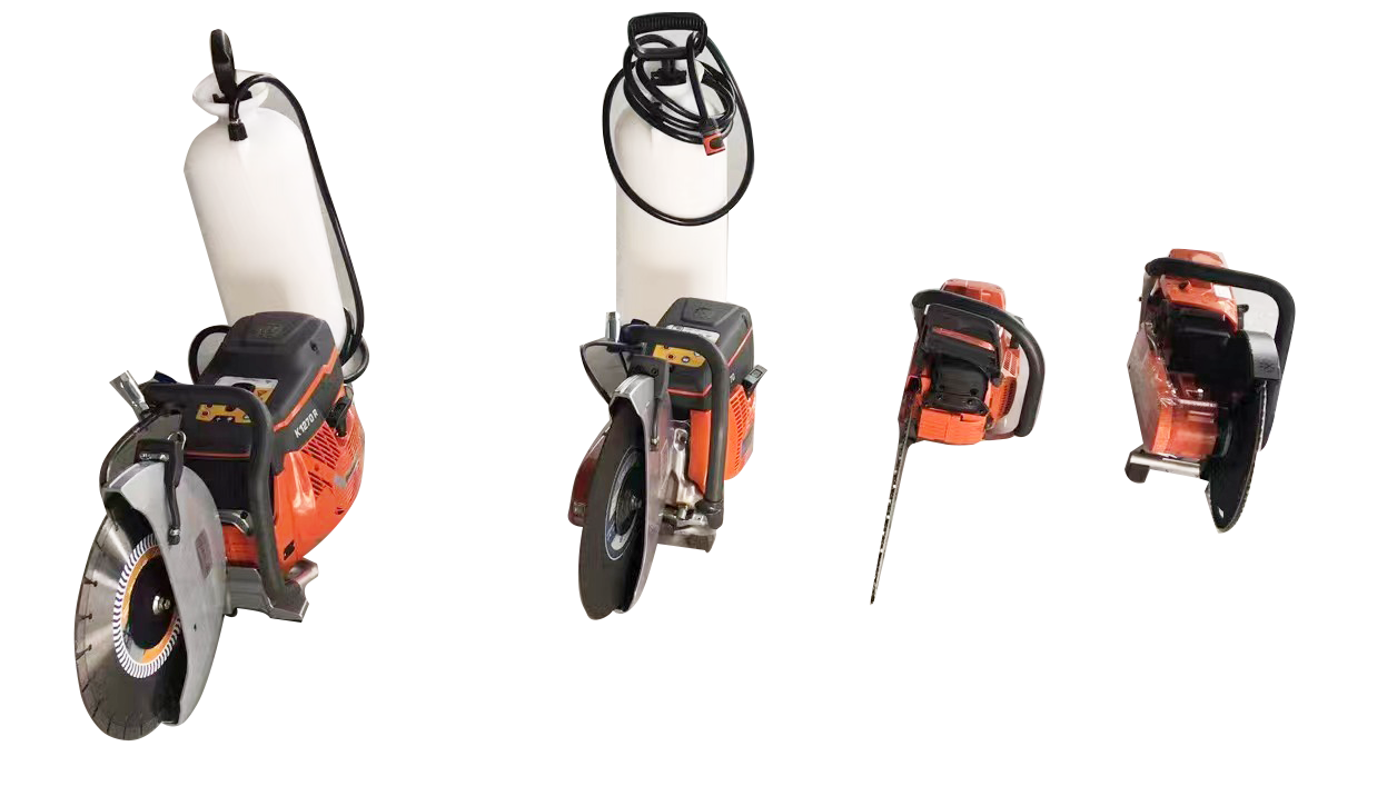 全功能切割鋸工具組主機功率5.8KWPJR-K 1270R無齒鋸A兩臺、功率3.7KWPJR-K770無齒鋸B兩臺功率3.6KWPJR-365X機動鏈鋸兩臺功率4.1KWPJR-S/ 115J機動雙輪異向切割鋸兩臺、以及鋸片,鏈條、冷卻水壺、火花塞、加油配比壺及其它附件組成。