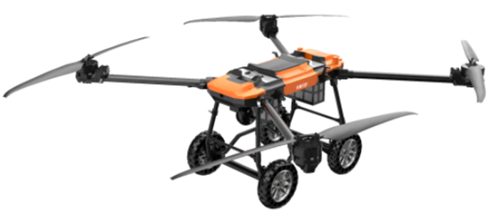 本無人機(jī)為北京凌天智能裝備集團(tuán)研發(fā)的多用途陸空兩棲無人機(jī)平臺,采用四旋翼機(jī)身設(shè)計,載重大,續(xù)航長,并且機(jī)體折疊標(biāo)準(zhǔn)化負(fù)載接口、集成航電系統(tǒng),還支持選配雷達(dá)避障系統(tǒng)。同時,該無人機(jī)具備陸空兩棲功能,可以在地面行駛,行走系統(tǒng)可快拆。滿足消防滅火、應(yīng)急教援、物資運(yùn)輸、環(huán)境監(jiān)測等不同場是的行業(yè)應(yīng)用。