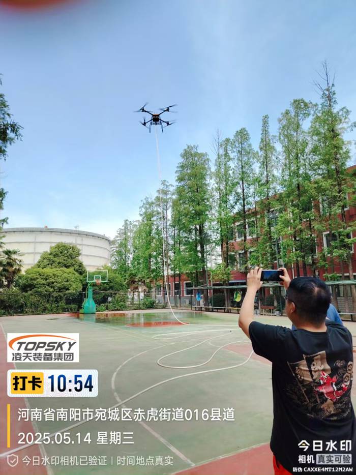 LT-F50-MH陸空兩棲高層建筑系留滅火無人機,是我公司針對城市高層消防需要而最新自行設(shè)計的,該無人機通過高空噴水滅火作業(yè),充分實現(xiàn)了操作人員與火災(zāi)現(xiàn)場遠距離分隔的優(yōu)點,能很好地保護滅火人員的人身安全。該無人機具有結(jié)構(gòu)新穎,性能穩(wěn)定可靠,操作靈活,維修方便、噴水距離遠、流量大等特點,同時,該無人機具備陸空兩棲功能,可以在地面行駛。該無人機可裝載在消防車上,能快速啟動升空,通過特制高壓水帶與消防車水罐連接,消防車水罐內(nèi)部高效泡沫/水基滅火劑輸送到無人機平臺,在水槍噴口水平噴射出去,達到滅火的效果。