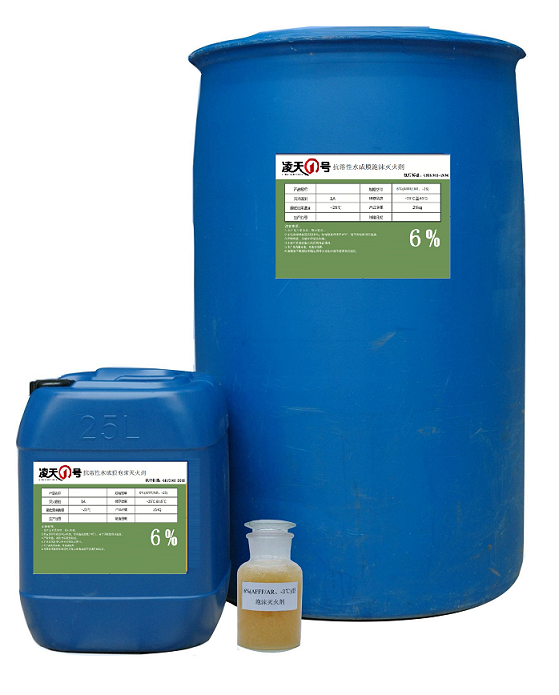 該滅火劑的各項性能指標符合GB15308-2006 《水成膜泡沫滅火劑》的要求。按與水體積混合比分為3%AFFF (3: 97)和6%AFFF(6:94)兩種。該滅火劑通過比例混合經(jīng)泡沫產(chǎn)生裝置可以均勻細膩的泡沫。該滅火劑是目前低倍數(shù)泡沫滅火劑中滅火效率最高、滅火速度最快的一-種滅火劑,它具有多種使用形式,可以適用于各種低倍數(shù)泡沫產(chǎn)生系統(tǒng)和泡沫滅火器中使用,經(jīng)國家權(quán)威部門檢測對人體無毒無刺激,腐蝕性低,該滅火劑不但徹底解決了環(huán)境污染問題而且儲存期長等特點。
