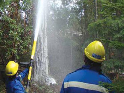 雙握把泡沫槍 可簡單、快速噴射泡沫控制現(xiàn)場火勢,打開混合腔的進水,塞入泡 沫棒,擰緊密封蓋,連接進 水管,就可以噴射泡沫,有 效的控制火勢。