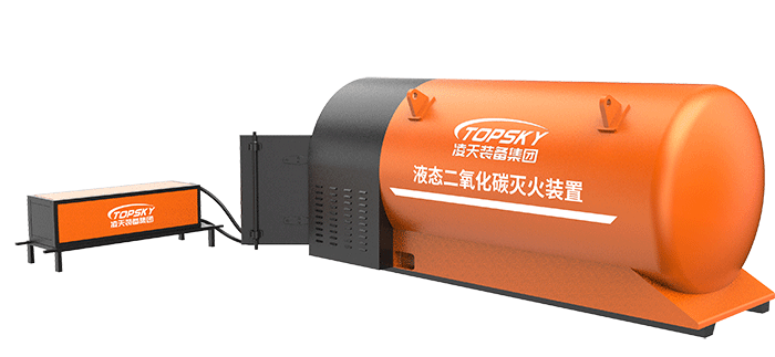 液態(tài)二氧化碳滅火裝置,采用平板車為運(yùn)載平臺,搭載液態(tài)二氧化碳滅火模塊,采用液態(tài)二氧化碳為滅火劑,運(yùn)輸至井下火區(qū)近附,經(jīng)自增壓調(diào)控系統(tǒng)實(shí)現(xiàn)罐內(nèi)穩(wěn)壓,并通過遠(yuǎn)距離輸送管路將液體從罐內(nèi)向密閉火區(qū)噴射,利用其急速膨脹氣化和吸熱效率高的物理特性,可實(shí)現(xiàn)惰性降氧,吸熱降溫,吸附阻化等功能,從而可快速進(jìn)行井下煤層自燃火災(zāi)的預(yù)防與撲滅等。