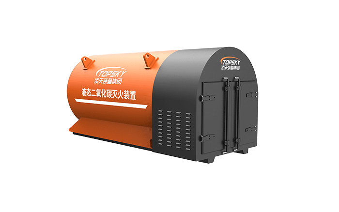 液態(tài)二氧化碳滅火裝置,采用平板車為運(yùn)載平臺(tái),搭載液態(tài)二氧化碳滅火模塊,采用液態(tài)二氧化碳為滅火劑,運(yùn)輸至井下火區(qū)近附,經(jīng)自增壓調(diào)控系統(tǒng)實(shí)現(xiàn)罐內(nèi)穩(wěn)壓,并通過(guò)遠(yuǎn)距離輸送管路將液體從罐內(nèi)向密閉火區(qū)噴射,利用其急速膨脹氣化和吸熱效率高的物理特性,可實(shí)現(xiàn)惰性降氧,吸熱降溫,吸附阻化等功能,從而可快速進(jìn)行井下煤層自燃火災(zāi)的預(yù)防與撲滅等。