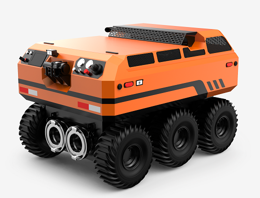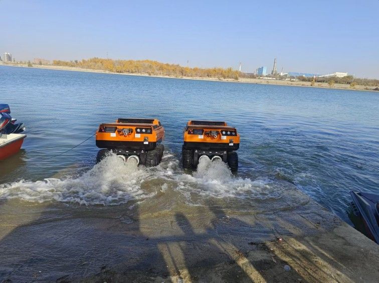 采用6×6輪式底盤,液壓驅(qū)動(dòng),裝有真空輪胎,另加配水下推進(jìn)器,增加水中行進(jìn)效率,水陸兩棲,可全地形行駛;