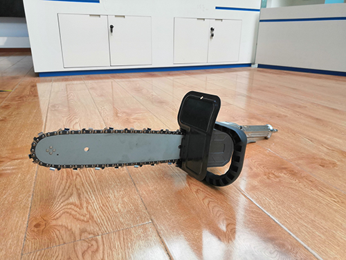 PJQL-4 礦用氣動(dòng)鋸(以下簡(jiǎn)稱氣動(dòng)鋸),是我公司經(jīng)過(guò)多年的探索,在機(jī)電、通風(fēng)、采煤等各科室的高技術(shù)素質(zhì)科技人員的通力合作下,為煤礦開(kāi)發(fā)出的礦用切割與開(kāi)槽工具。氣動(dòng)鋸由鋸頭、鏈條、聚氨酯軟管三大部分組成,聚氨酯軟管將氣源和氣動(dòng)鋸連接起來(lái),氣源提供的氣壓驅(qū)動(dòng)氣動(dòng)鋸高速運(yùn)轉(zhuǎn),進(jìn)行切割。工作時(shí),冷卻水通過(guò)導(dǎo)板中間的孔流向切割部位,起到冷卻和降塵的作用。并且具備雙重?cái)嗨Wo(hù)功能,氣動(dòng)鋸在切割時(shí)采取了濕法切割水冷卻,以避免切割時(shí)出現(xiàn)火花。可用于采掘工作面使用的煤層、巖石切割,用于密閉墻的砌筑,也可用于礦山救援時(shí)的混凝土與巖石破拆。