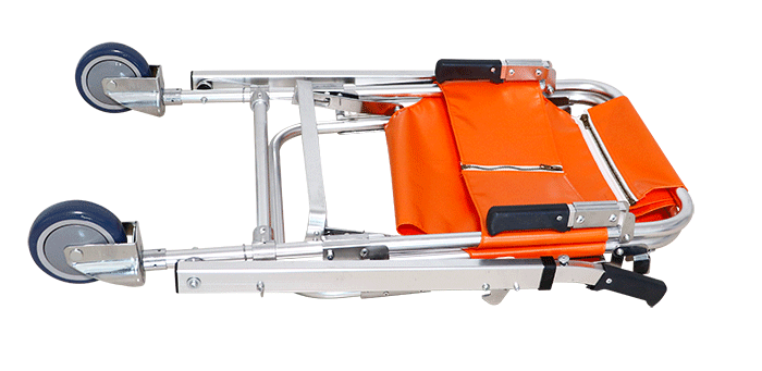 可折疊式結(jié)構(gòu)便于攜帶,用于救護(hù)骨折患者上下樓道之用。產(chǎn)品配備寬型保險帶,以保證病人在轉(zhuǎn)移過程中的安全擔(dān)架設(shè)有兩個輪子,方便于在地面的移動。擔(dān)架靠背后端設(shè)有加強(qiáng)把手,可承受更多重量。