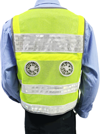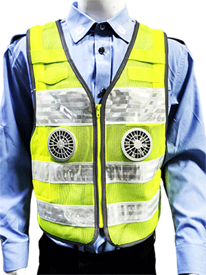 溫控警用背心(低溫型)為前開襟馬甲式樣,開襟用拉鏈拉開,前后身分別具有兩道橫向反光帶;前身胸部左右分別綴釘胸微、警號錦絲搭扣帶絨面、對講機袢、前后身兩側(cè)用錦絲搭扣及銅制四合扣連接,針對不同腰圍三檔調(diào)節(jié)肥瘦;可根據(jù)不同身高調(diào)節(jié)長短