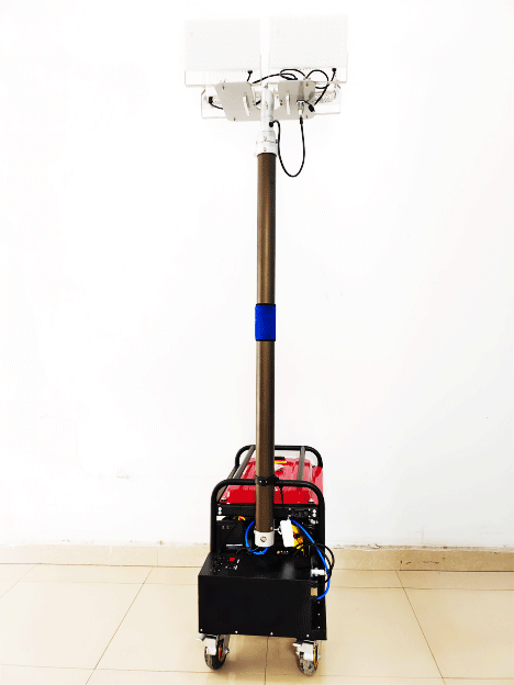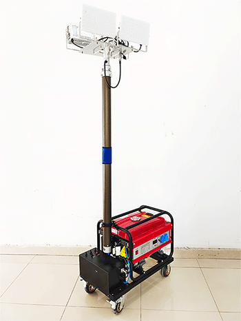 3.可直接使用發(fā)電機組供電,也可接通220V市電長時間照明;采用發(fā)電機組供電次注滿燃油連續(xù)工作時間可達(dá)8小時以上。