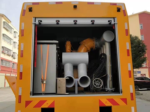 配備一臺(tái)一體式真空輔助自吸排污泵,流量1500m3/h,電機(jī)功率90kw,揚(yáng)程14m,吸程8m,安裝在車(chē)輛尾部,方便拆卸水管及出水。該泵無(wú)需灌水,無(wú)需額外增加水環(huán)泵輔助抽真空,性能好,出水快。水泵啟動(dòng)采用軟啟動(dòng)