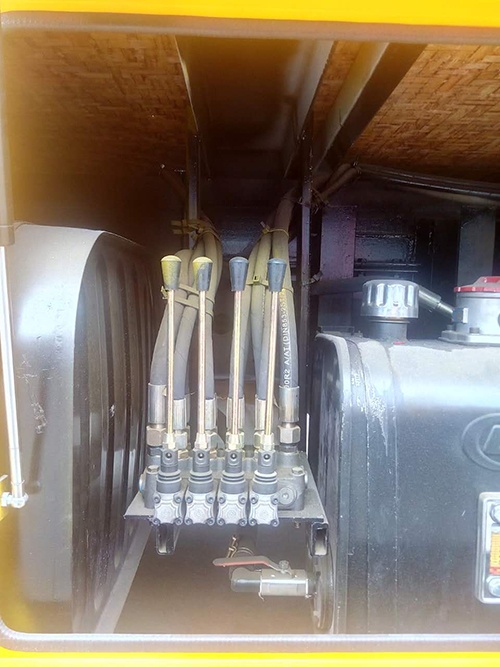 輛安裝四只液壓支撐腿,可在駐車(chē)狀態(tài)均分車(chē)輛靜壓,保護(hù)車(chē)輪及彈簧鋼板。選用進(jìn)口優(yōu)質(zhì)意大利多路閥組,液壓支撐缸采用進(jìn)口密封件,單缸靜載荷5噸,加裝雙向液壓鎖。