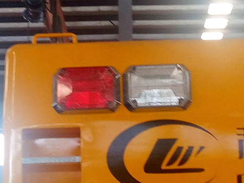 車(chē)頭安裝長(zhǎng)排工程警燈,帶喊話(huà)器。