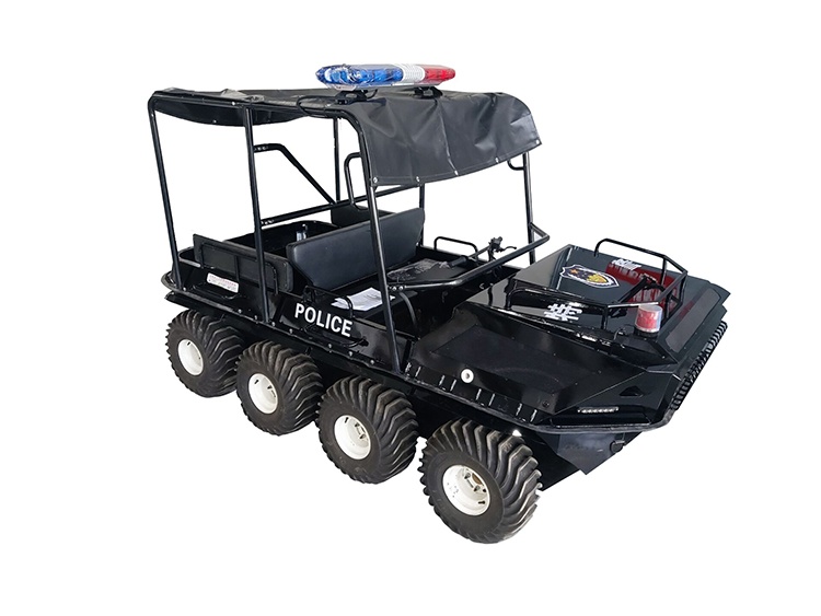 在復(fù)雜惡劣的地形條件和自然環(huán)境下,水陸兩棲全地形車可以讓搜救隊員和攜帶的救援裝備快速到達救援現(xiàn)場,減少徒步帶來提供消耗,完成最后一公里最好五分鐘緊急救援任務(wù)。水陸兩棲全地形車可配備點到絞盤、救援擔(dān)架組件、探照燈、警示燈、警報器、脫鉤、破拆工具等裝備, 給救援團隊提供救援保障,更安全的解救傷員和疏散群眾。