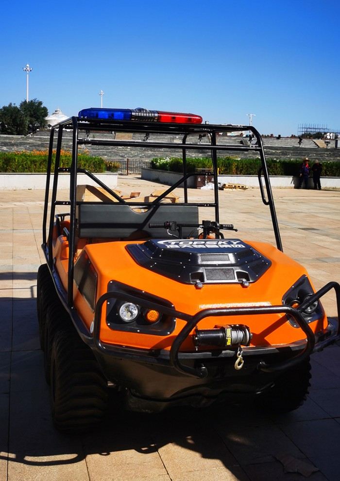 水陸兩棲全地形車在崎嶇路面為救護車提供輔助服務(wù),當(dāng)遇到救護車不能安全通過地方,兩棲全地形車可以翻越各種類型障礙物,及時以到達傷害發(fā)生的地。緊急情況下,可讓您取道直接的路線,更快速的到達現(xiàn)場。額外配備擔(dān)架以及防傾倒結(jié)構(gòu)意味著病人或受傷人員可的得到安全和快速醫(yī)療看護。