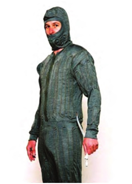 水冷服包括長袖上衣(軀干和胳膊部位的冷卻)、長褲(腿部的冷卻)、露臉包頭式帽子(頭部和頸部的冷卻)、制冷裝置、2個水瓶(2升容量)、電池組、運輸包