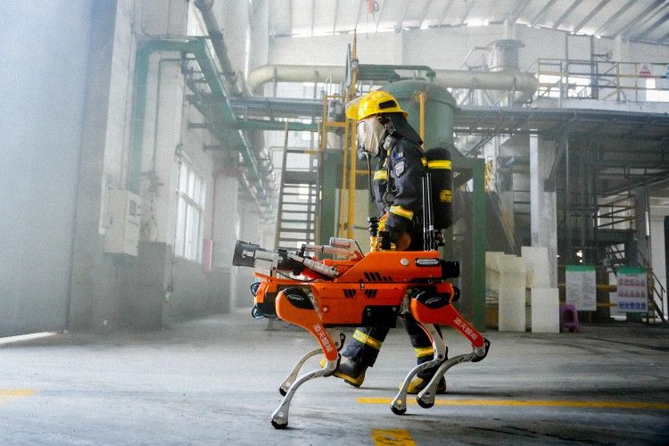 四足機(jī)器狗是一種結(jié)合仿生學(xué)與智能技術(shù)的特種裝備,專為復(fù)雜、高危的場景設(shè)計(jì),工作溫度范圍覆蓋-20℃至55℃,具備IP67級防水防塵性能,可在濃煙、高溫、有毒氣體等極端環(huán)境中穩(wěn)定運(yùn)行。