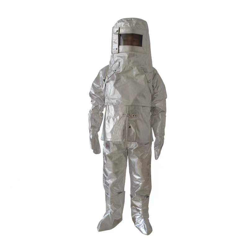 該服裝由鋁箔耐高溫隔熱布、阻燃隔熱:層及舒適層組成,具有耐磨、隔熱、抗輻射熱等性能。基布面料不含石棉、玻璃纖維,具有重量輕、耐高溫、耐折以及對人體無毒害等優(yōu)點,能有效地保障消防隊員和高溫作業(yè)人員不被烈焰、高溫灼傷。是消防隊員在火場及高溫事故現(xiàn)場進行搶險作業(yè)的理想防護服裝。