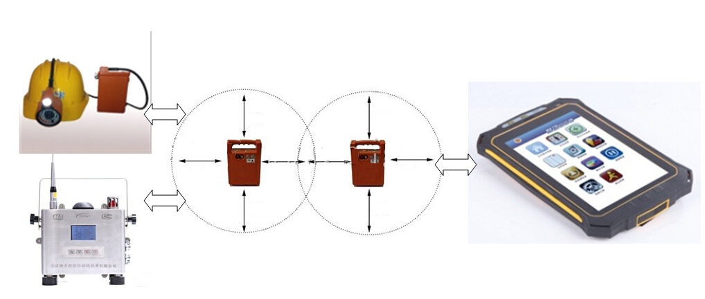 該系統(tǒng)采用無(wú)線連接方式的信號(hào)中繼與傳輸,應(yīng)急通信網(wǎng)絡(luò)的通信距離可達(dá)20公里。無(wú)線通信網(wǎng)絡(luò)采用自組織、自愈合方式快速形成多跳鏈狀或網(wǎng)狀網(wǎng)拓?fù)浣Y(jié)構(gòu),無(wú)線通信距離不小于2000米,具有快速部署、高帶寬、低時(shí)延、可靠性強(qiáng)等特點(diǎn)。井下救援人員或工作人員,通過(guò)佩戴礦用本安型平板計(jì)算機(jī)、配套的低照度攝像頭自帶語(yǔ)音通話、無(wú)線中繼器、多參數(shù)測(cè)定儀等裝備,將現(xiàn)場(chǎng)的實(shí)時(shí)圖像、語(yǔ)音、環(huán)境參數(shù)等信息實(shí)時(shí)回傳到指揮平臺(tái),調(diào)度指揮人員可以實(shí)時(shí)了解現(xiàn)場(chǎng)情況,并對(duì)現(xiàn)場(chǎng)人員進(jìn)行調(diào)度指揮。