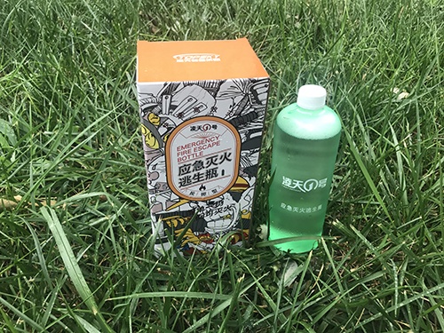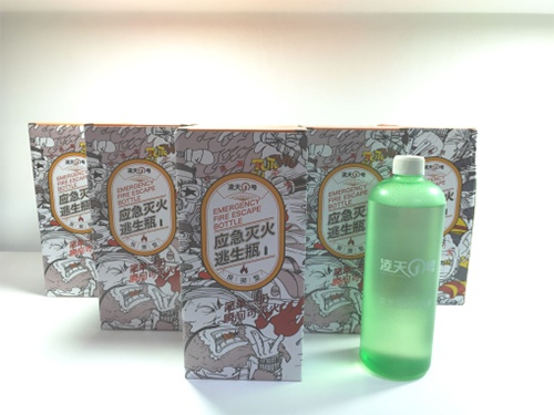 應(yīng)急逃生滅火瓶為滅火劑裝于環(huán)保可降解的特殊樹脂瓶中,只需投擲于火源中,滅火瓶觸碰到物體即可破碎,滅火劑會從破裂的瓶中瞬間散布出來, 在燃燒物表面流散的同時液體冷卻其表面,并在燃燒物表面上形成一層水膜與泡沫層共同封閉燃燒物表面,隔絕空氣,形成隔熱屏障,吸收熱量后的液體汽化并稀釋燃燒物表面上空氣的含氧量,對燃燒物體產(chǎn)生窒息作用,阻止了燃燒的繼續(xù);同時,該滅火劑與燃燒物質(zhì)發(fā)生化學(xué)反應(yīng),形成聚合物質(zhì),該聚合物質(zhì)能有效地抑制或降低燃燒自由基的產(chǎn)生,破壞燃燒鏈,阻止燃燒.