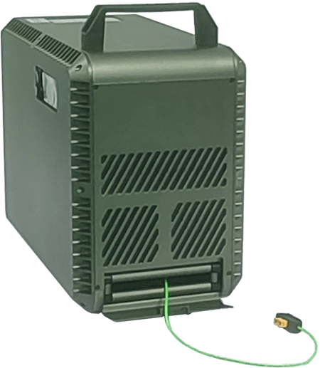 機載系留電源箱是一種向工作在高空的照明無人機提供電力的供電系統(tǒng),系統(tǒng)由系留電源箱、機載模塊組成,通過地面系留供電系統(tǒng)源源不斷輸送電力,可實現(xiàn)24小時不間斷滯空,懸停,解決了常規(guī)無人機續(xù)航能力不足的難題,在救災(zāi)搶險,電力搶修等一些突發(fā)情況中發(fā)揮了重要作用。