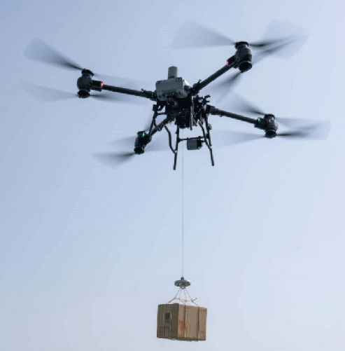 機載緩降器卷揚機依靠無人機的靈活性,可快速對現(xiàn)場進行作業(yè)部署,提升貨物時有較強的機動性能。設(shè)備操作簡單,控制明了,可一鍵實現(xiàn)對貨物的上升、下降、放貨,具備一鍵斷繩功能,當設(shè)備回收受阻時,一觸發(fā)緊急斷繩機制,保障無人機的安全