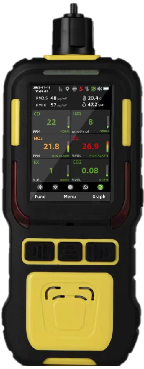無線復(fù)合氣體探測儀(以下簡稱探測儀)支持二十多種智能氣體傳感器,可同時(shí)連續(xù)檢測5種氣體的濃度(氣體種類可自由組合系統(tǒng)智能識別)、粉塵濃度(PM2.5、PM10)、核輻射、溫濕度。將采集到的氣體數(shù)據(jù)、GPS位置、粉塵濃度、核輻射、溫濕度等數(shù)據(jù)通過4G上傳至監(jiān)管后臺實(shí)現(xiàn)無線管理;探測儀也可以實(shí)現(xiàn)現(xiàn)場實(shí)時(shí)數(shù)據(jù)一鍵打印功能。探測儀具有氣體濃度調(diào)校標(biāo)定、濃度值超限報(bào)警功能、STEL超限報(bào)警和TWA超限報(bào)警,一旦設(shè)備采集數(shù)據(jù)濃度值超限,設(shè)備立即開啟聲光振動報(bào)警進(jìn)行警示,并將此時(shí)數(shù)據(jù)同步上傳至平臺??蓪⒍嗯_探測儀的監(jiān)測、監(jiān)控信息上傳,并建立特殊作業(yè)場所多功能監(jiān)測監(jiān)控系統(tǒng)平臺,保障作業(yè)人員的安全。采用新一代主流外觀設(shè)計(jì),美觀耐用。