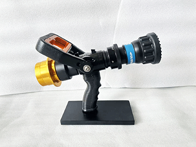 材料采用鋁合金 6061或優(yōu)于同等以上材質(zhì)制成,可打直流或開花或復(fù)合射流,可噴射中 低倍泡沫射流,有關(guān)斷射流開關(guān)、 中心一束射流和外圍射流可同時(shí)噴射。