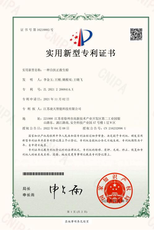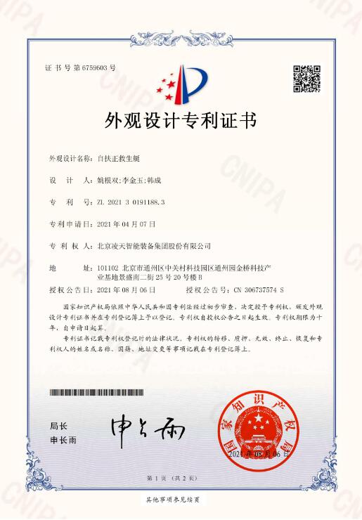 1. ★自扶正功能:將自扶正激流救生艇閑傾90°后手動釋放,能自動恢復到正常狀態(tài),扶正后人員安全,扶正后不影響整艇的任何功能。