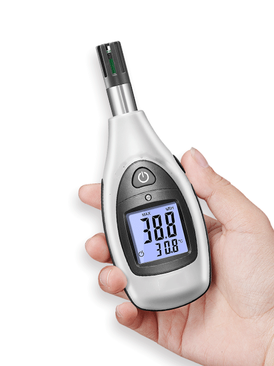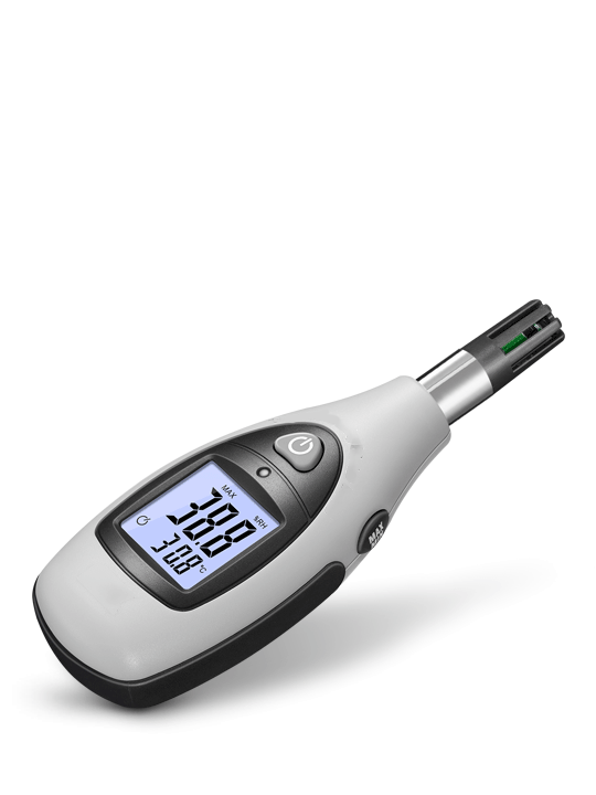 本產(chǎn)品具有小巧便攜、高對比度帶感應(yīng)背光LCD顯示屏、舒適手持感等特征;全新低功耗芯片設(shè)計,輔以科學算法,快捷精準的測量空氣溫度和濕度。