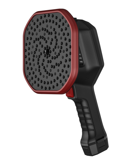 本產(chǎn)品是一款手持式的工業(yè)聲學成像儀,廣泛應用于電力局放,帶壓或真空條件下的氣體泄漏檢測、氣密性檢測、設備異響定位等多種場景。儀器利用麥克風陣列波束形成技術(shù)獲取聲源分布數(shù)據(jù),并配合高清攝像頭實時采集視頻畫面,通過將聲源分布數(shù)據(jù)同視頻圖像進行聲像融合,把變化的聲源動態(tài)的呈現(xiàn)在顯示屏上。 可以幫助現(xiàn)場巡檢人員快速定位故障,提供處置依據(jù)。